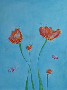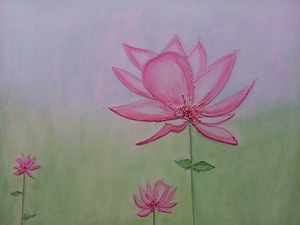 2009roze bloemen, aquarel